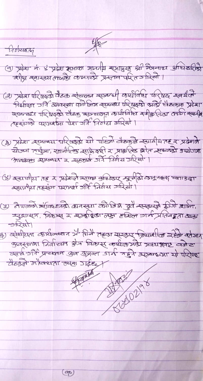 मिति २०७५।०२।१४ गते बसेको गण्डकी प्रदेश समन्वय परिषद्को पहिलो वैठकको निर्णय